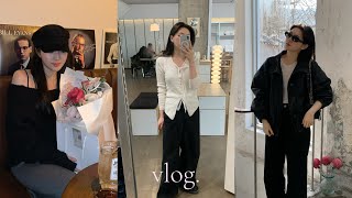 VLOG | 일상브이로그. 행복한 2월 시작. 합정 청모 추천. 레더자켓 추천. 달바 반반패드. 기초 케어. 봄 코디 추천. ootd. 서촌 카페 추천. 2026ss. 레이어드