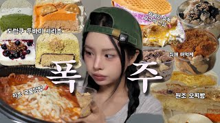 음주 디저트 먹방25I폭주 버튼 눌렸다🚨와플 긴급 수혈|카페인중독•자메이카통다리•모짜라이스롤 떡볶이•우유말먹•명랑핫도그•오지상치즈케이크•1994양과점|뷰티모델