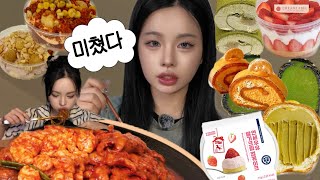 먹방35|두찜신상 대창닭발🌶️그리고 크림가득 디저트🍰|두바이붕어빵•편의점신상•크림라벨•돌체테리아•떠먹케•수건케이크|뷰티모델